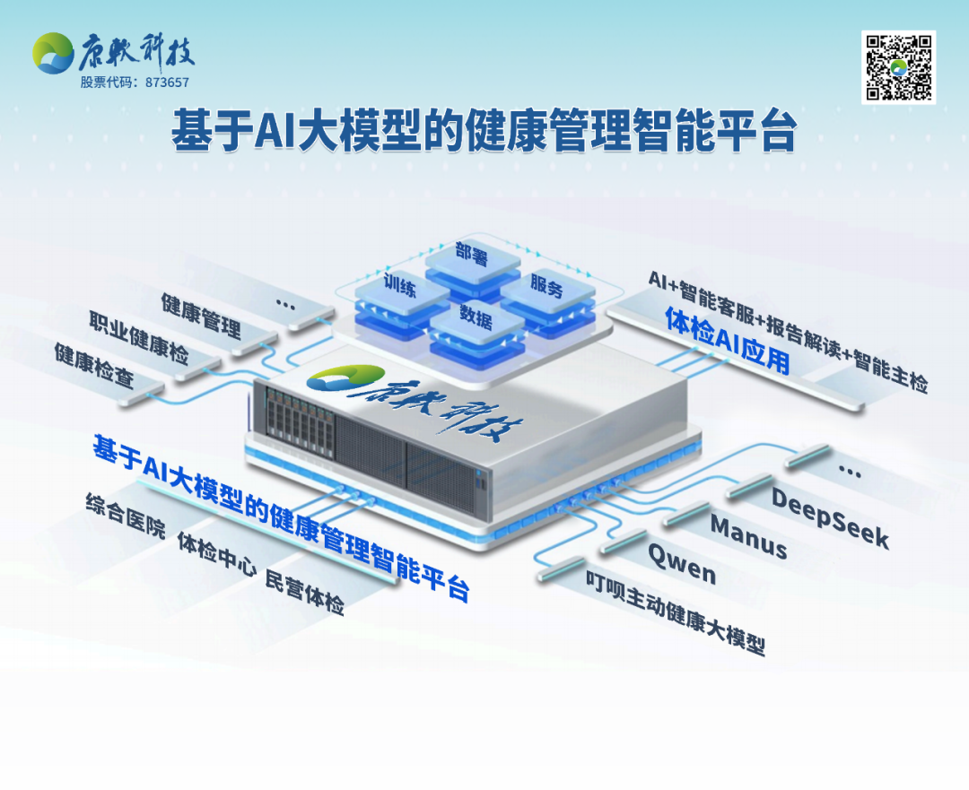 2025年3月14日至16日,2025五湖健康大会-第九届中国慢病健康管理与大健康产业峰会暨老年保健与老年健康发展论坛将在湖北省武汉市隆重举行。作为我国健康管理学界与健康产业界融合发展的年度盛会,本次大会邀请了3位院士和多位医学健康领域专家及行业大咖做报告。报告围绕“聚焦慢性病健康管理 高质量发展健康产业”之主题,将集中呈现“健康科创与健康科普”、“健康营养与健康行动”、“学科发展与产业进步”之精彩内容。第7部《健康管理蓝皮书》将于2025五湖健康大会发布! 作为医疗信息化领域的专精特新企业,康软科技将携最新研发的 AI 大模型健康管理智能平台系列产品惊艳亮相此次大会。 我们诚挚邀请各位专家学者、企业同行莅临康软科技展位A22,与我们共话 AI 技术与健康管理的深度融合与创新应用! 康软科技智能化全流程健康管理系统全面接入 DeepSeek、Owen、ChatGLM 、Manus等人工智能引擎,并构建了与广东省第二人民医院&华为联合发布的主动健康 AI 大模型融合创新的业务应用场景,打造了开放兼容的康软健康管理智能平台。检前、检中、检后全流程与各 AI 大模型深度融合,为体检行业带来前所未有的变革,显著提升体检服务的精准度、效率和便捷性,为综合医院、体检中心、民营体检体检机构和受检者提供更优质的体验,将开启人工智能健康管理新时代。“康软健康管理智能平台”应用能力贯穿“AI+智能客服+报告解读+智能主检”,实现智能化全流程健康管理一体化 AI 应用。